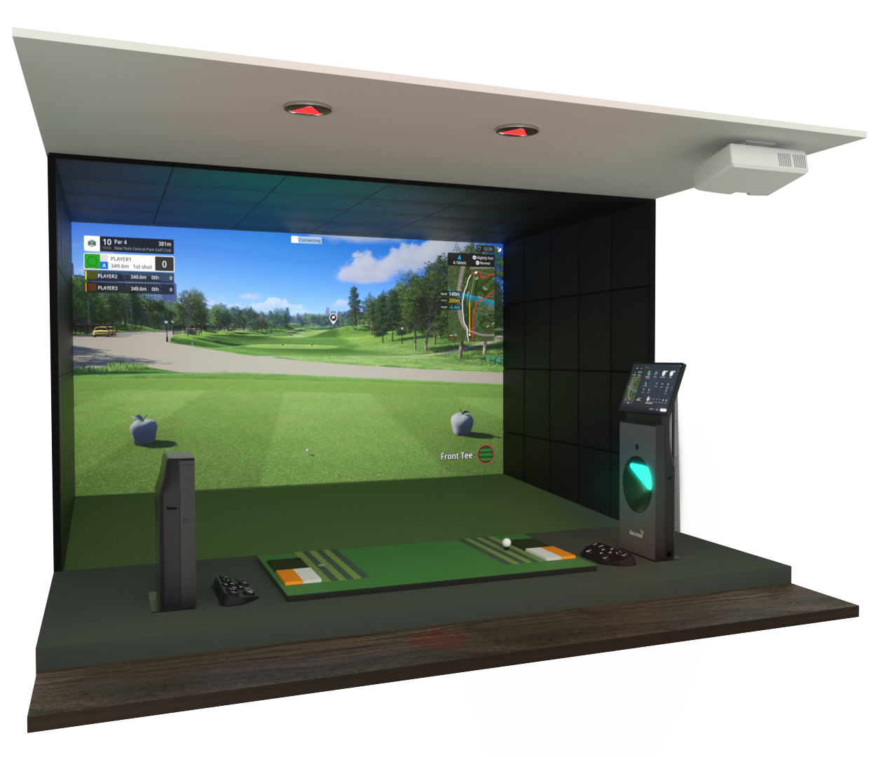 90° T4 sensor layout for accurate ball data, plus HD cameras at 400 fps for clear swing analysis.